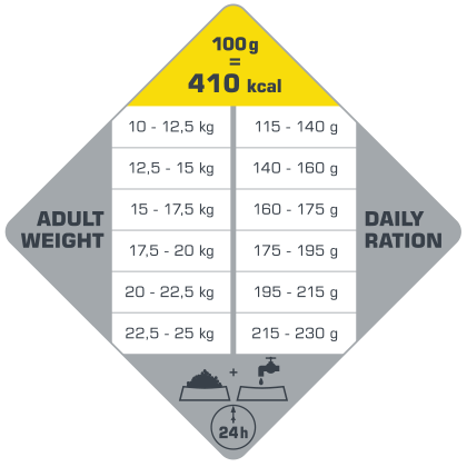 - Des croquettes adaptées et savoureuses de 11 mm pour une bonne ingestion