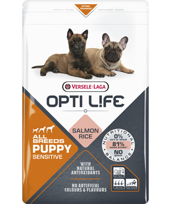 Opti Life Puppy Sensitive All Breeds est une formule parfaitement équilibrée à base de saumon et de riz, spécialement conçue pour votre chiot avec une digestion sensible.