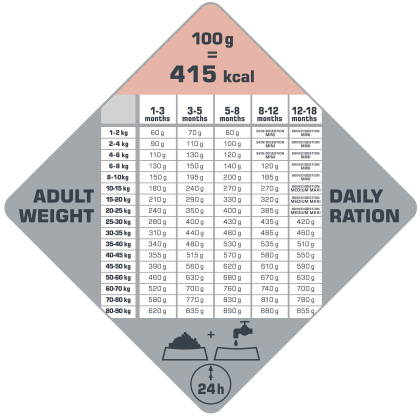 - 81 % des protéines présentes sont d’origine animale et, en combinaison avec du riz, celles-ci assurent une digestion facile et une bonne consistance des excréments. La composition extrêmement savoureuse est sans gluten et ne contient donc ni blé ni maïs. Le risque d’allergies alimentaires ou d’intolérances s’en trouve ainsi réduit.