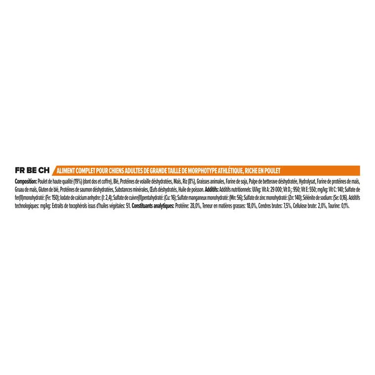 - Formulé pour les chiens de grande taille de morphotype athlétique.