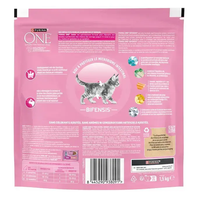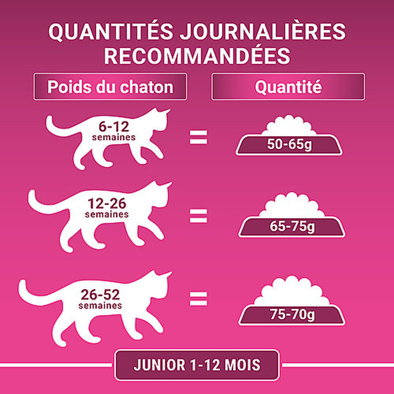 • Développement sain des fonctions vitales favorisé par un profil nutritionnel adapté aux chatons en croissance.